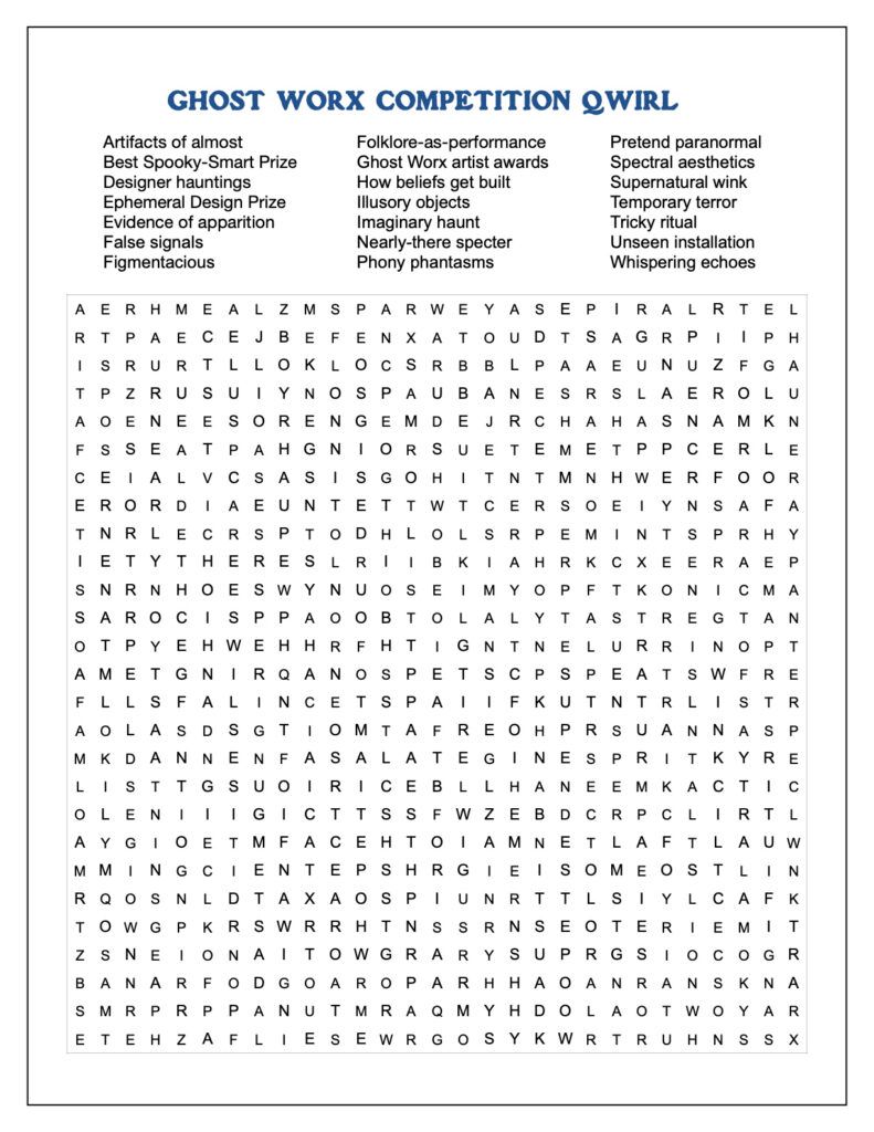 It’s less a word search about phantoms and more a puzzle about how ghost stories work.