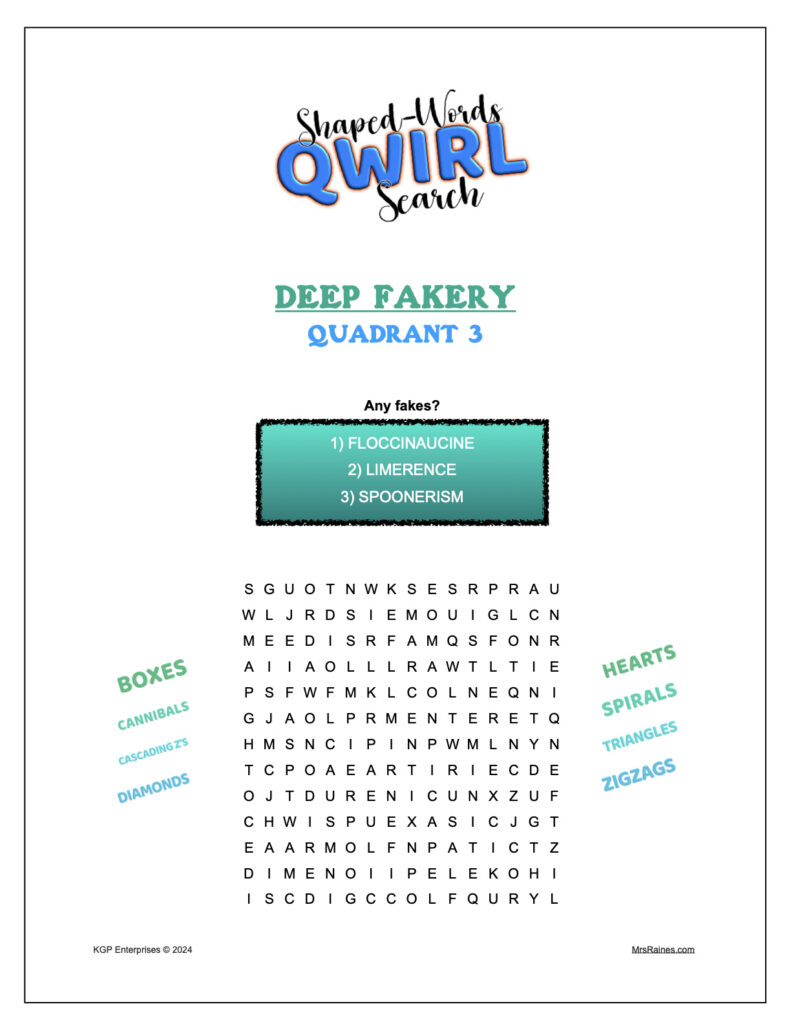 2) Free mini pencil puzzle shaped word search with a fake word or two: